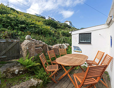 To the back of the cottage there is a small decked courtyard with table and chairs, it is a morning sun trap, ideal for alfresco breakfast!