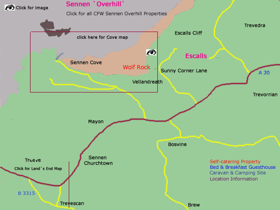 Set 250 feet above splendid Whitesand beach Wolf Rock commands stunning views due west over the ocean, Sennen Cove village and the Lands End cliffs. In every season the scene below is spectacular.